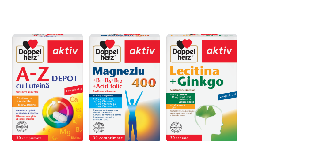 – Doppelherz Aktiv Memovit – pentru memorie, concentrare și claritate mentală