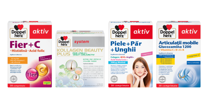 – Doppelherz Aktiv Fier + C + Histidină + Acid folic – sprijin pentru imunitate și prevenirea anemiilor