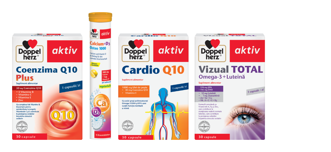 – Doppelherz Aktiv Coenzima Q10 Plus – pentru energie celulară și susținerea inimii